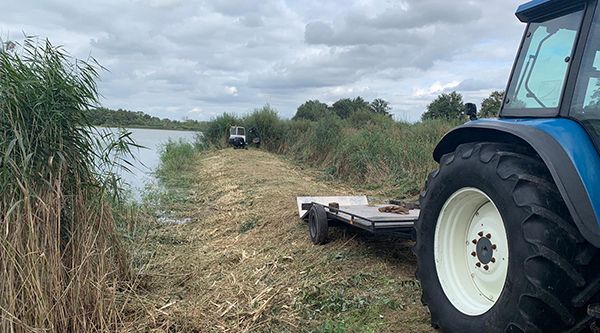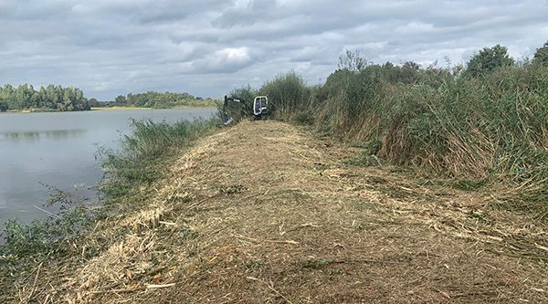 Het klepelen van hout en riet met de minigraver.